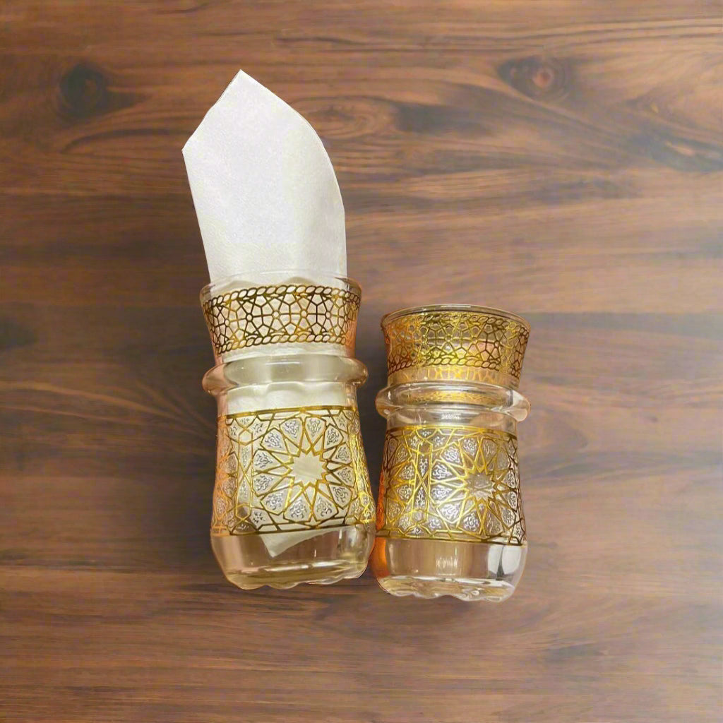 Offrez à vos invités une expérience raffinée avec cet ensemble de 12 verres à thé en verre doré . Conçus avec un design oriental élégant et des motifs dorés luxueux, ces verres sont parfaits pour savourer du thé marocain, turc ou arabe . Idéal pour les réceptions, les fêtes et les moments de détente, cet ensemble ajoute une touche d'élégance et de tradition à votre vaisselle.