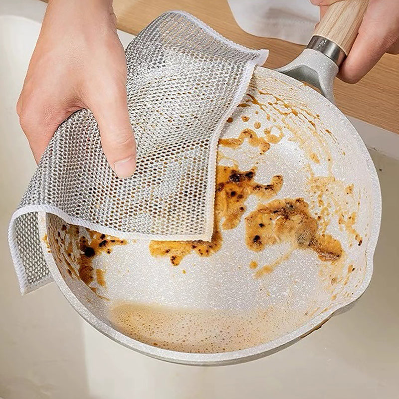 Fil d'Acier Résistant : Conçue en acier robuste, elle élimine les taches tenaces sans rayer les surfaces.