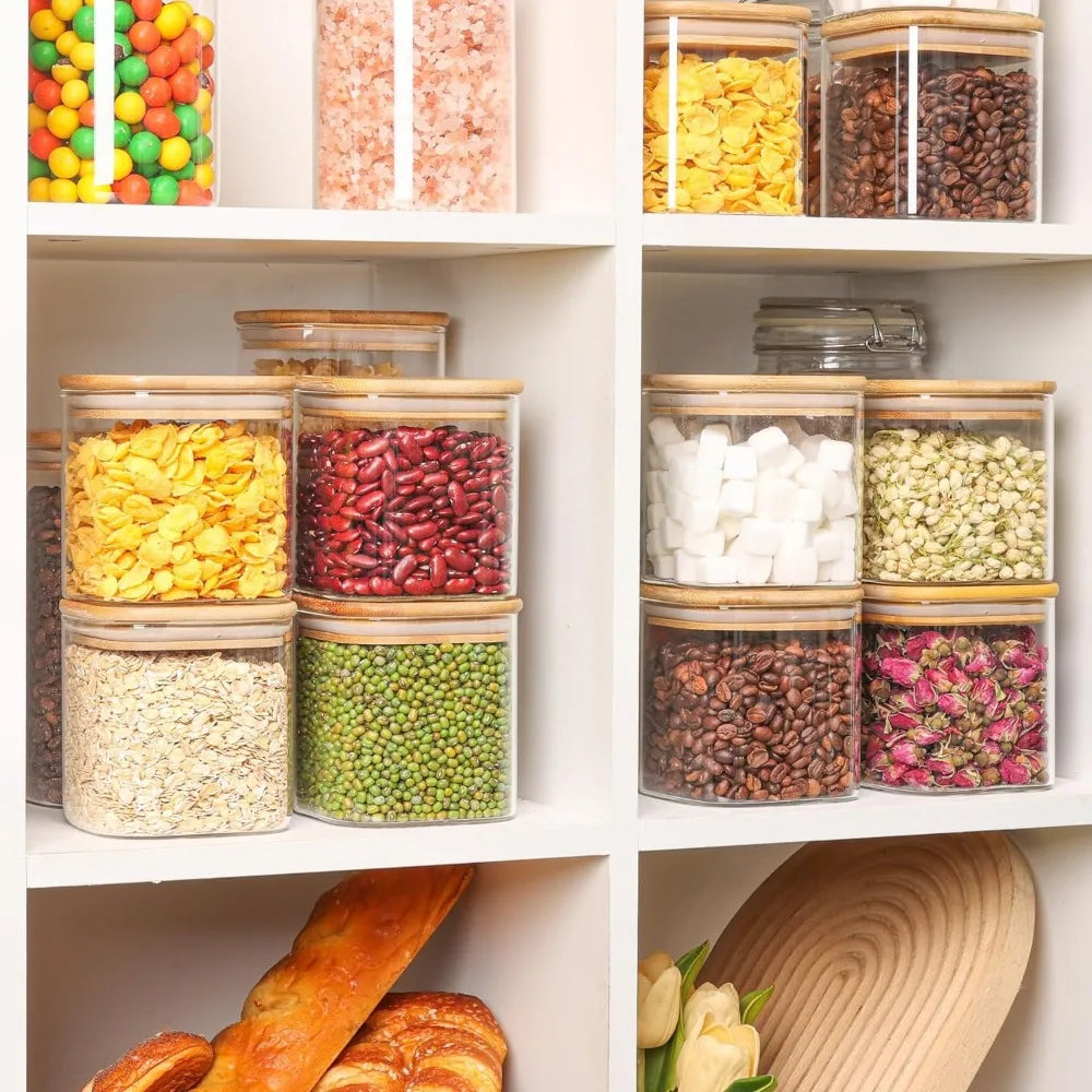 6 Bocaux de Conservation en Verre avec Couvercles en Bambou