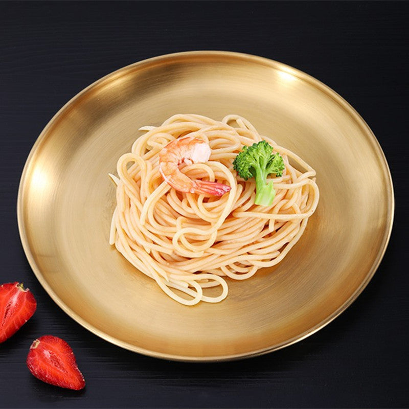 Découvrez l'élégance coréenne dans votre propre cuisine avec ces superbes assiettes en acier inoxydable. Leur design rond épais et durable les rend parfaites pour mettre en valeur vos plats, que vous organisiez un dîner sophistiqué ou que vous souhaitiez simplement servir un bon gâteau ou un délicieux steak.