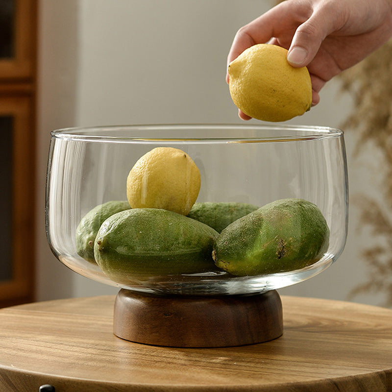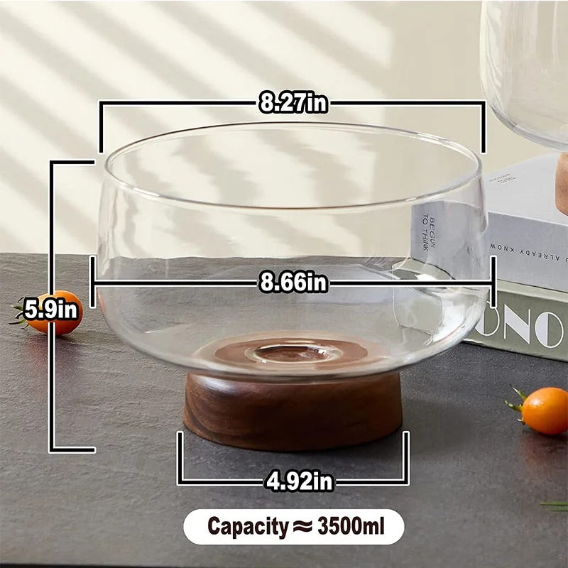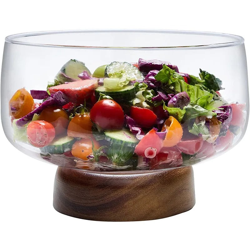 Ajoutez une touche de raffinement naturel à votre table avec ce magnifique saladier en verre transparent posé sur un socle en bois d’acacia massif. Sa forme à pied surélevée le rend aussi fonctionnel que décoratif — idéal pour servir salades fraîches, fruits, punch, desserts ou centre de table floral lors de repas, buffets ou fêtes.