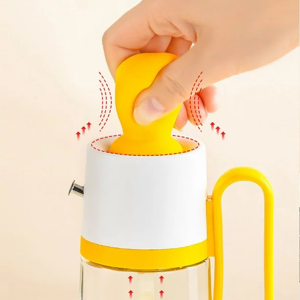 Simplifiez vos préparations culinaires avec ce distributeur d'huile innovant équipé d'un pinceau intégré.