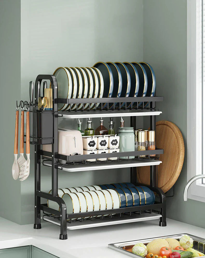 Optimisez votre espace de cuisine avec cet égouttoir à 3 étages. Conçu pour sécher assiettes, tasses et couverts, il maximise l’espace vertical tout en gardant votre comptoir dégagé.