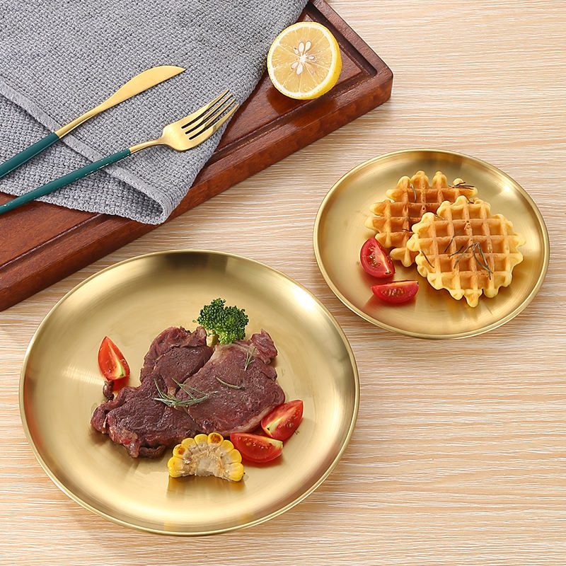 Ensemble de 3 Plateaux Décoratifs Ronds en Acier Inoxydable Doré – Style Coréen