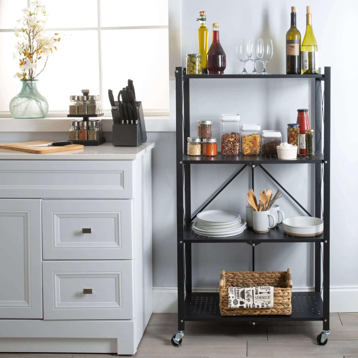 Étagères de Rangement Pliables en Métal avec Roulettes