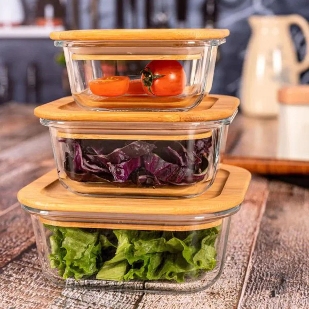 Cet ensemble de boîtes de rangement polyvalent de 3 pièces est un ajout fabuleux à vos essentiels de cuisine et impressionnera vos invités en les servant sur la table. Ce récipient de stockage avec couvercle en bois est hermétique et étanche, ce qui le rend parfait pour transporter votre déjeuner au travail ou pour conserver les restes. Il est pratique lorsque vous stockez des restes, des sauces ou des légumes coupés car le récipient en verre aide à garder les aliments frais plus longtemps. Le nettoyage de cette boîte est un jeu d’enfant car elle passe au lave-vaisselle. Il convient également au congélateur et au micro-ondes. (Petit bol : H-5,3 cm, L-11,5 cm, L-11,5 cm, L-320 g, C-280 ml, Bol moyen : H-6,0 cm, L-13,5 cm, L-13,5 cm, L-450 g, C -460ml, Grand bol : H-6.5cm, L-15.5cm, W-15.5cm, W-630gm, C-750ml)