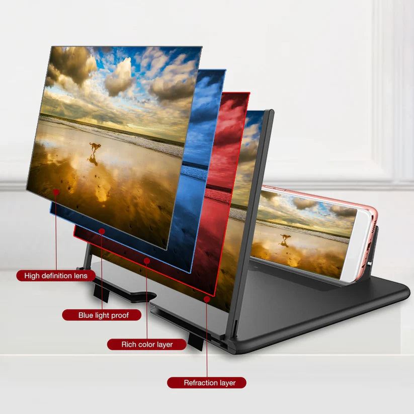 Offrez à vos yeux un confort visuel optimal avec la loupe agrandisseur d’écran 3D pour smartphone. Grâce à son effet optique HD, elle multiplie la taille de l’écran de votre téléphone, transformant vos vidéos, films ou appels vidéo en une expérience plus immersive et agréable. Fini la fatigue oculaire causée par les petits écrans !