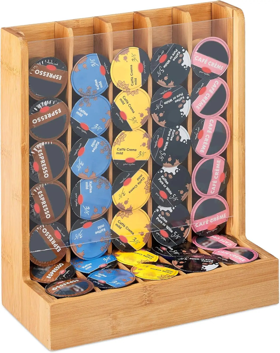 Ajoutez une touche naturelle et chic à votre coin café avec ce porte-capsules de café en bambou. Conçu pour allier fonctionnalité et esthétique, il permet de ranger vos capsules préférées tout en décorant votre cuisine ou salon de thé.