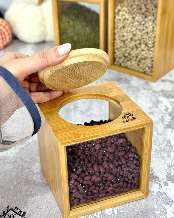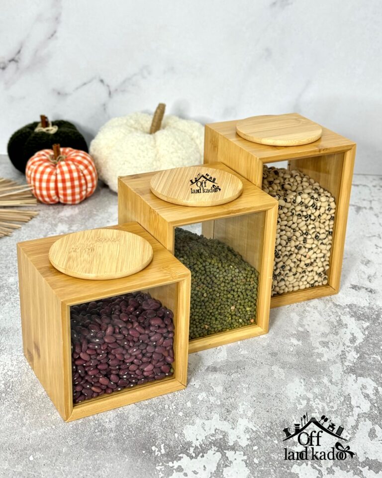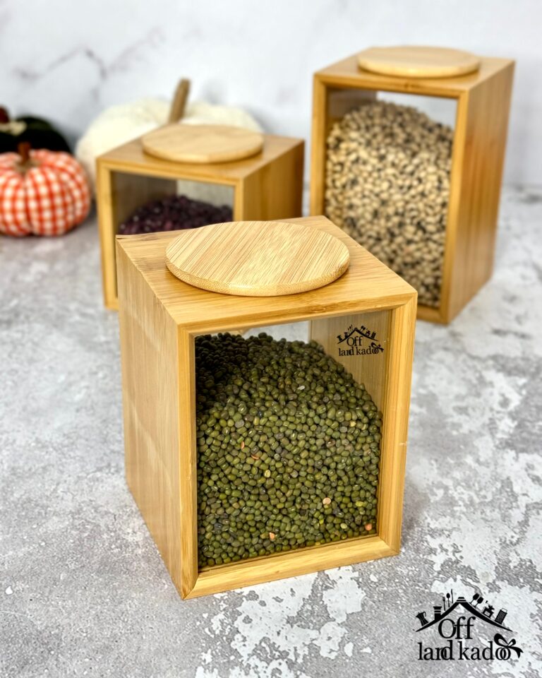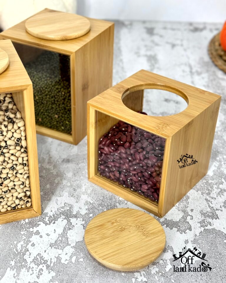 Pot de Stockage en Bambou – Couvercle Transparent Élégant