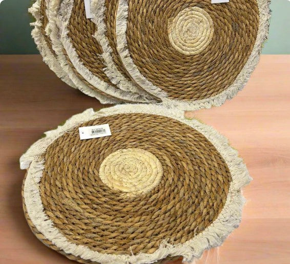 Ajoutez une touche naturelle et bohème à votre table avec ces sets de table ronds tissés à la main en chanvre et coton. Leur design ajouré et leur fil doré délicat subliment vos repas, qu’ils soient décontractés ou festifs. Parfaits pour protéger et décorer vos tables au quotidien